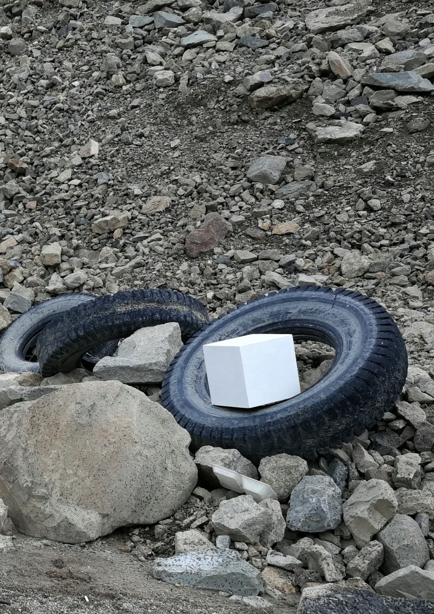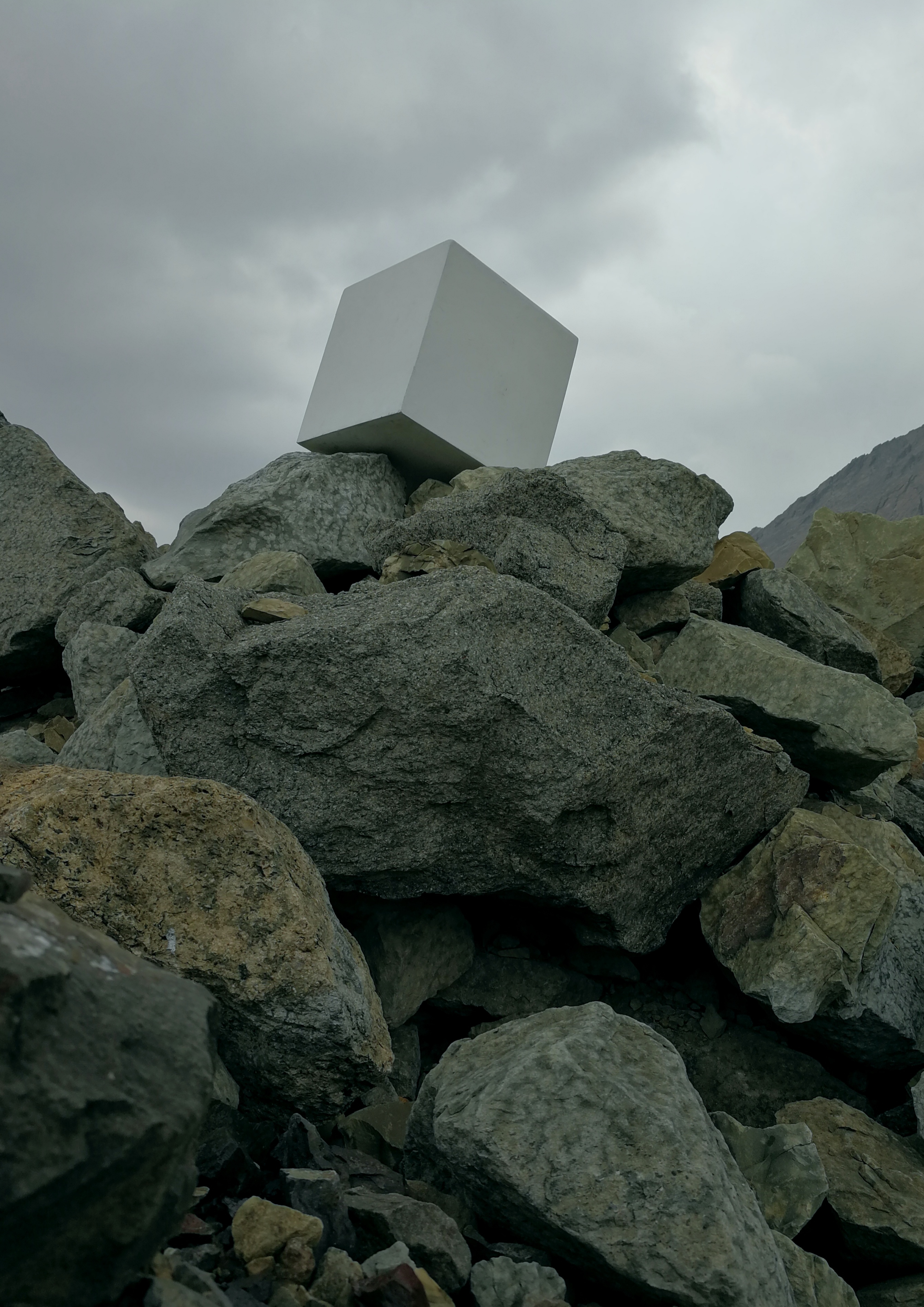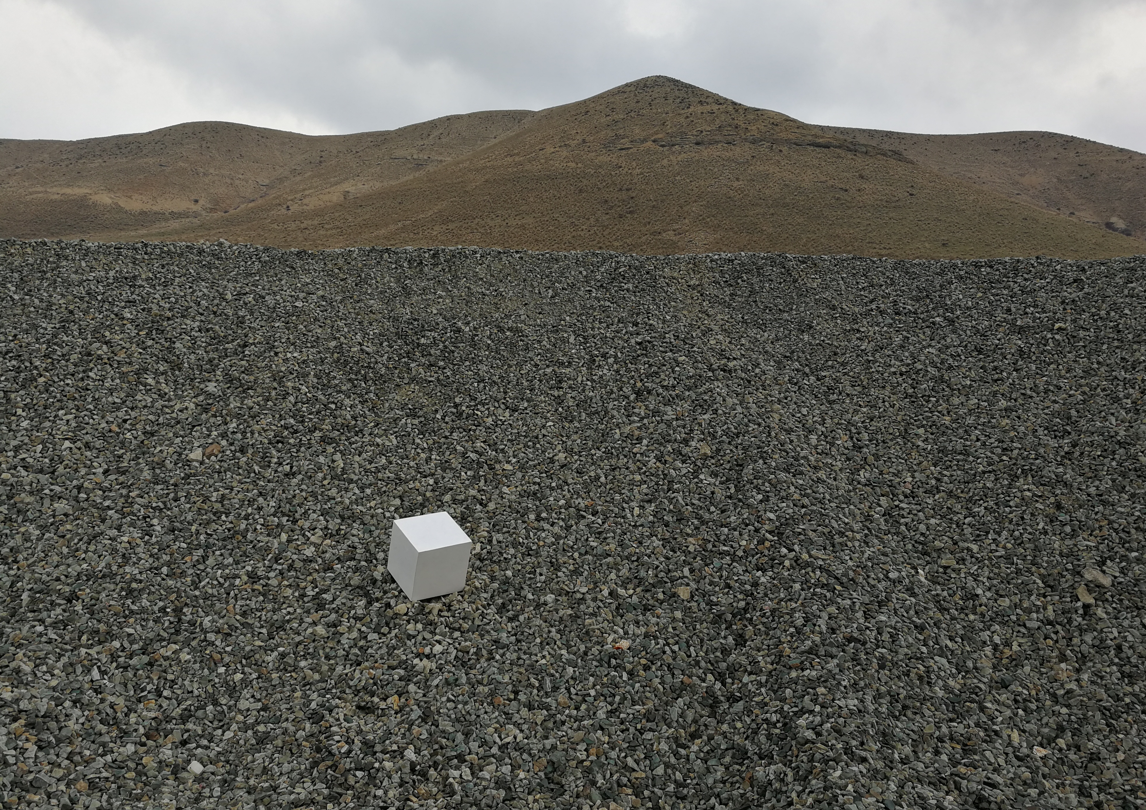 I was interested in the introduction of a man-made object in an outdoor setting, a white cube, a human element that forms a relationship with nature and helps it to be born again. From this, I feel a kind of storytelling blossom in these alternative landscapes; like a recurrent canvas that symbolically references creation, the picture or a full cliche space that needs to be recreated.