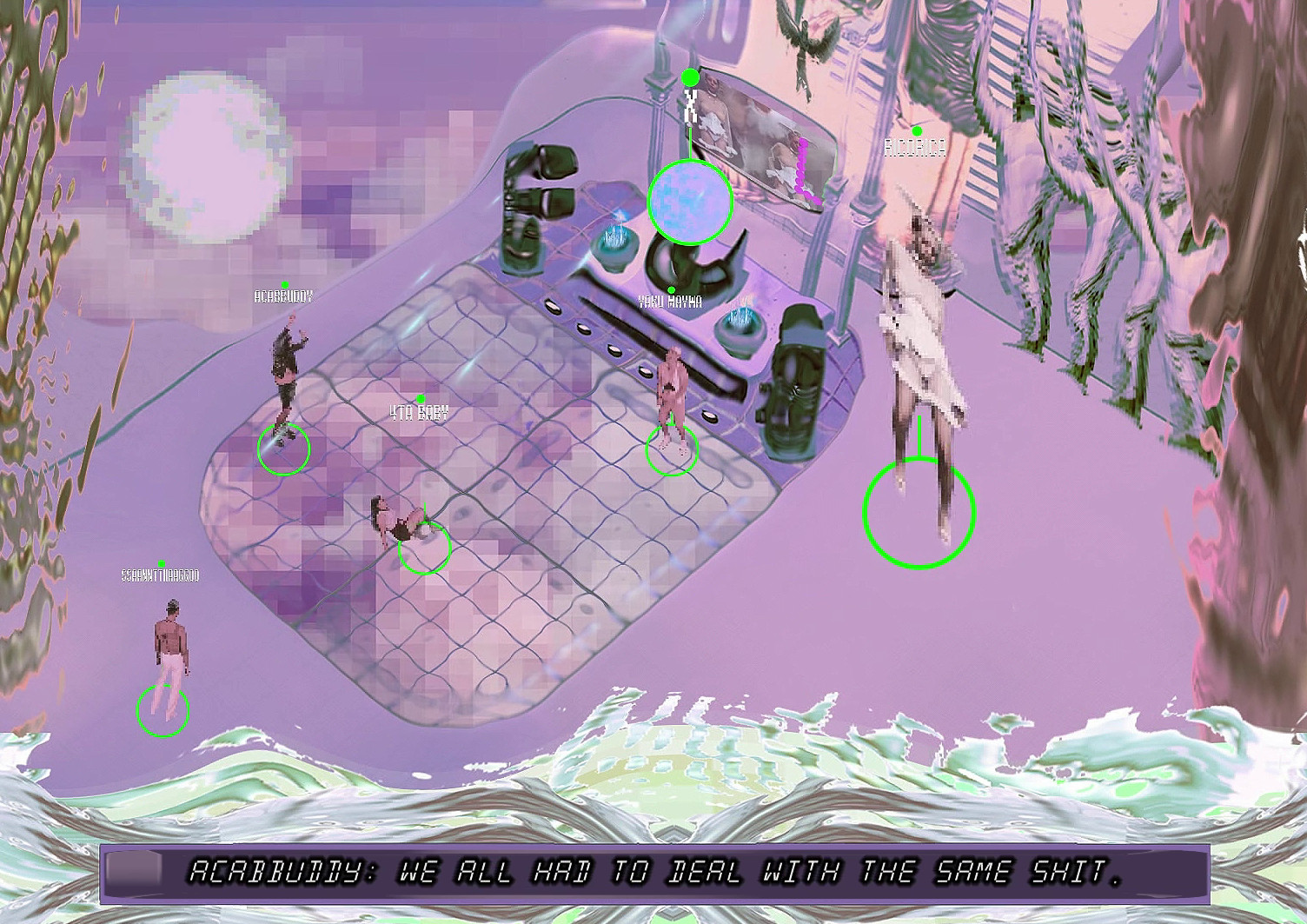 Narratively structured as a video game, “Retornar” takes place in an eco-pessimistic world, where Latin America has nothing else to give: its soil has dried up and the atmosphere has become increasingly dangerous. After a big war driven by an extreme exploitation of natural resources, the surviving characters wander around a dystopian Andean landscape, aimlessly and alone, with no other purpose but to spend their day going through different “puzzles” and “loading screens”, until they are summoned by a mysterious blue orb that will transport them into a digital celestial world where - after a big celebratory “last dance” - they will be forced into becoming the seeds for a new generation. “Retornar” was made through a multilayered process. The world itself was built through a mixture of scenes created in The Sims 4, SketchUp, Photoshop, as well as real footage shot in front of a green screen. The scenarios were built using an isometric perspective to mimic early 8 bit video games, as well as early life simulation games, and videochat universes.