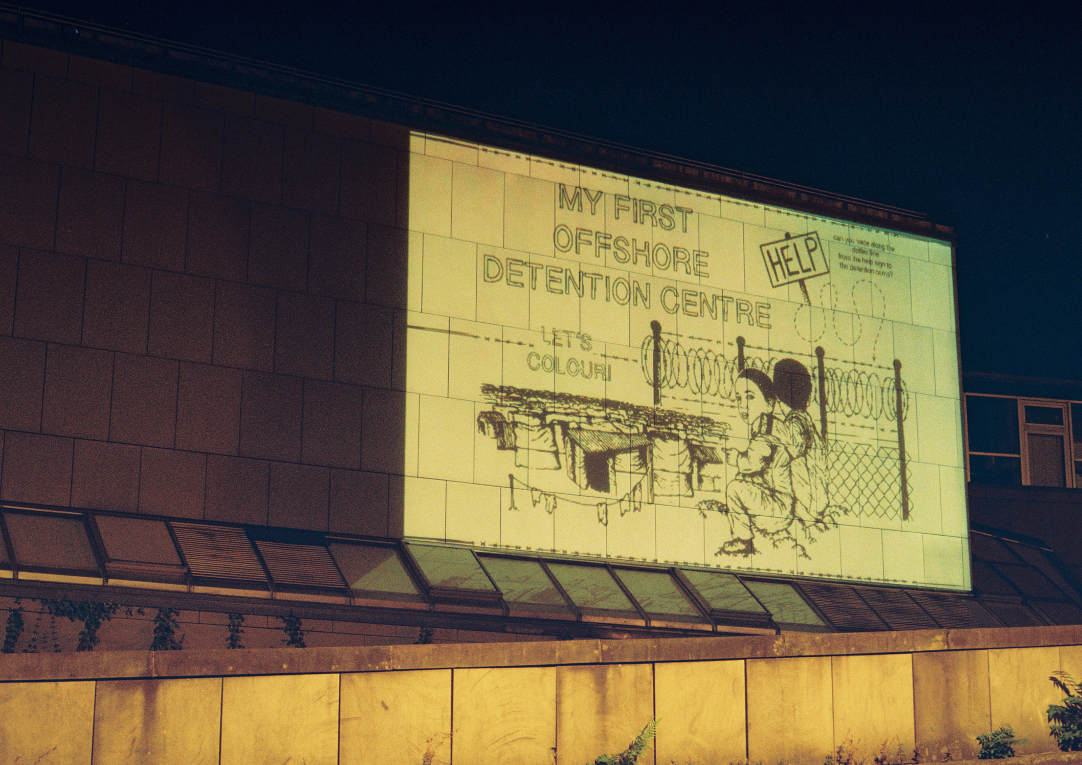 "My First Offshore Detention Centre" is a response to the British Government unveiling plans to ship refugees to offshore detention centres in Rwanda, following Australia's heinous and inhumane model.