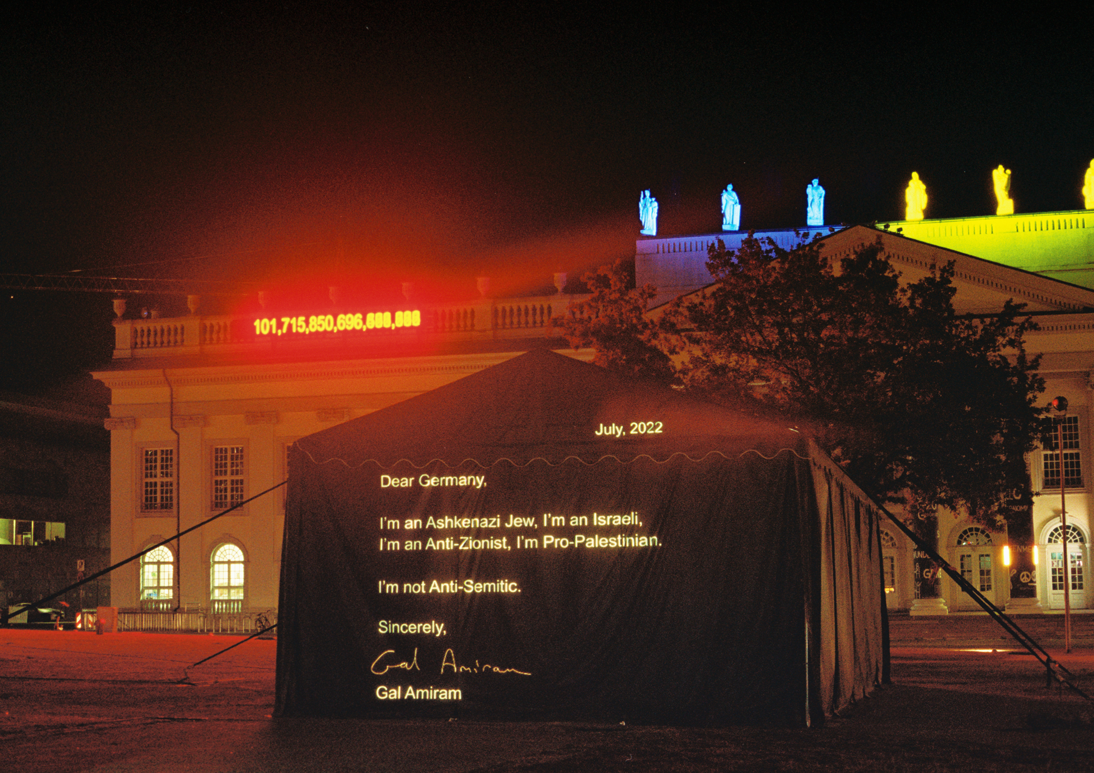 Gal Amiram is an Israeli artist currently based in Los Angeles. Amiram's research-based projects explore, through the use of photography, video, sound, and archival materials, the different sensorial methods (vision, smell, and sound) Israel uses to erase Palestinian presence in the occupied territories.